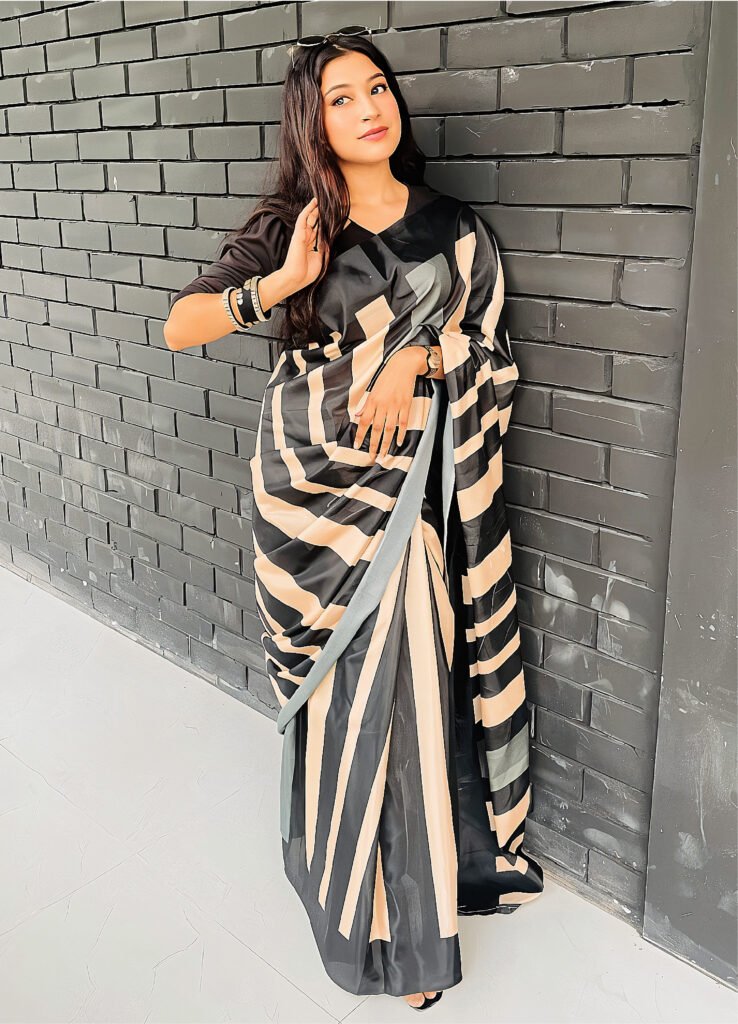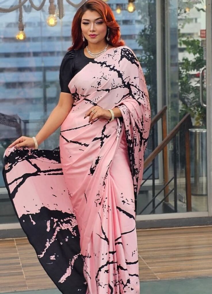 পিওর স্কিন প্রিন্ট শাড়ি + স্টাইল আর কমফোর্ট একসাথে! (code-22)