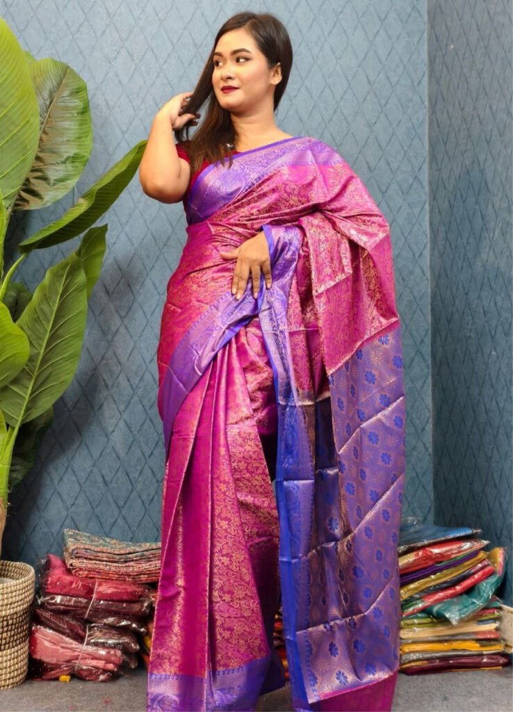 সফট সিল্ক কাঞ্জি কাতান শাড়ি – ম্যাচিং ব্লাউজ পিচ (code-17)