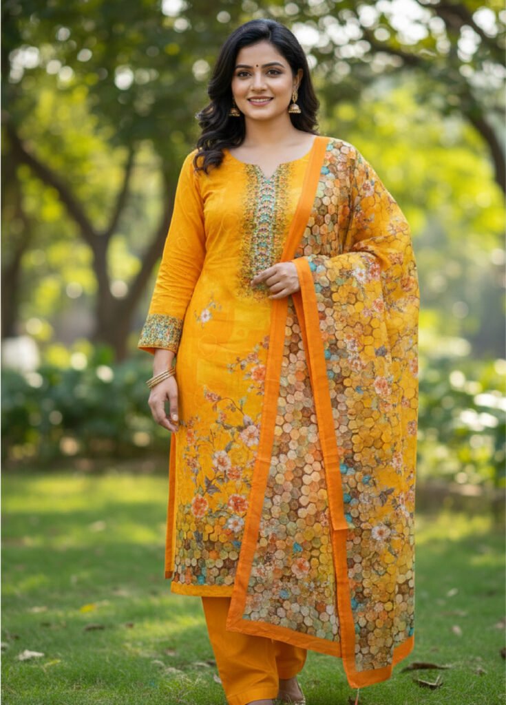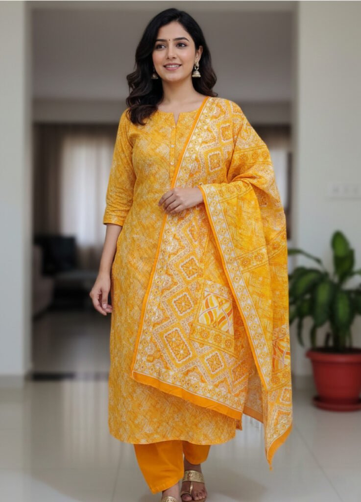 প্রিমিয়াম সান টেক্স জয়পুরি মামা কটন থ্রি-পিছ সেট (code-45)