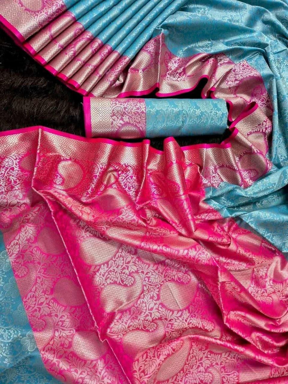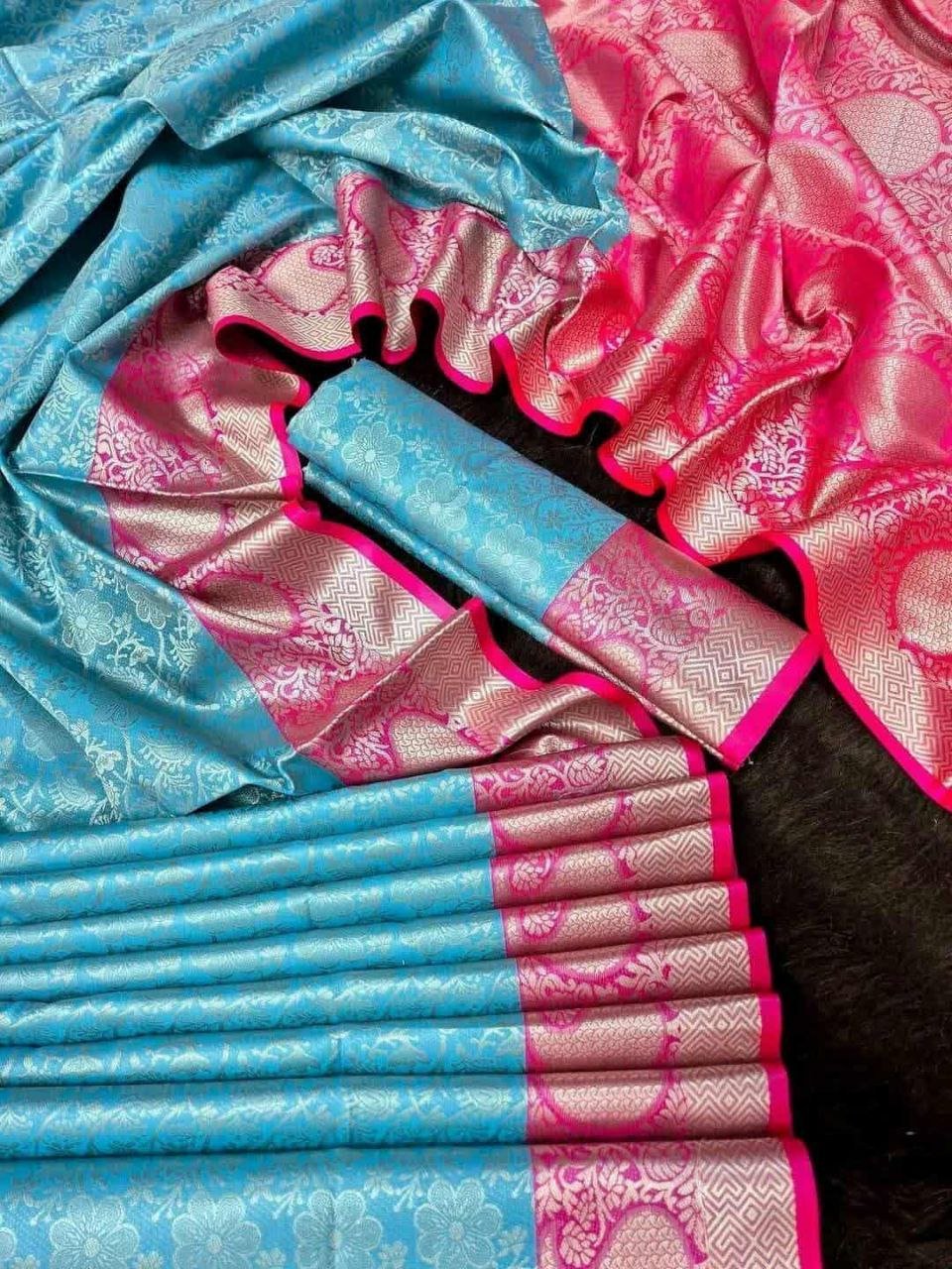 সফট সিল্ক কাঞ্জি কাতান শাড়ি – ম্যাচিং ব্লাউজ পিচ (code-17)