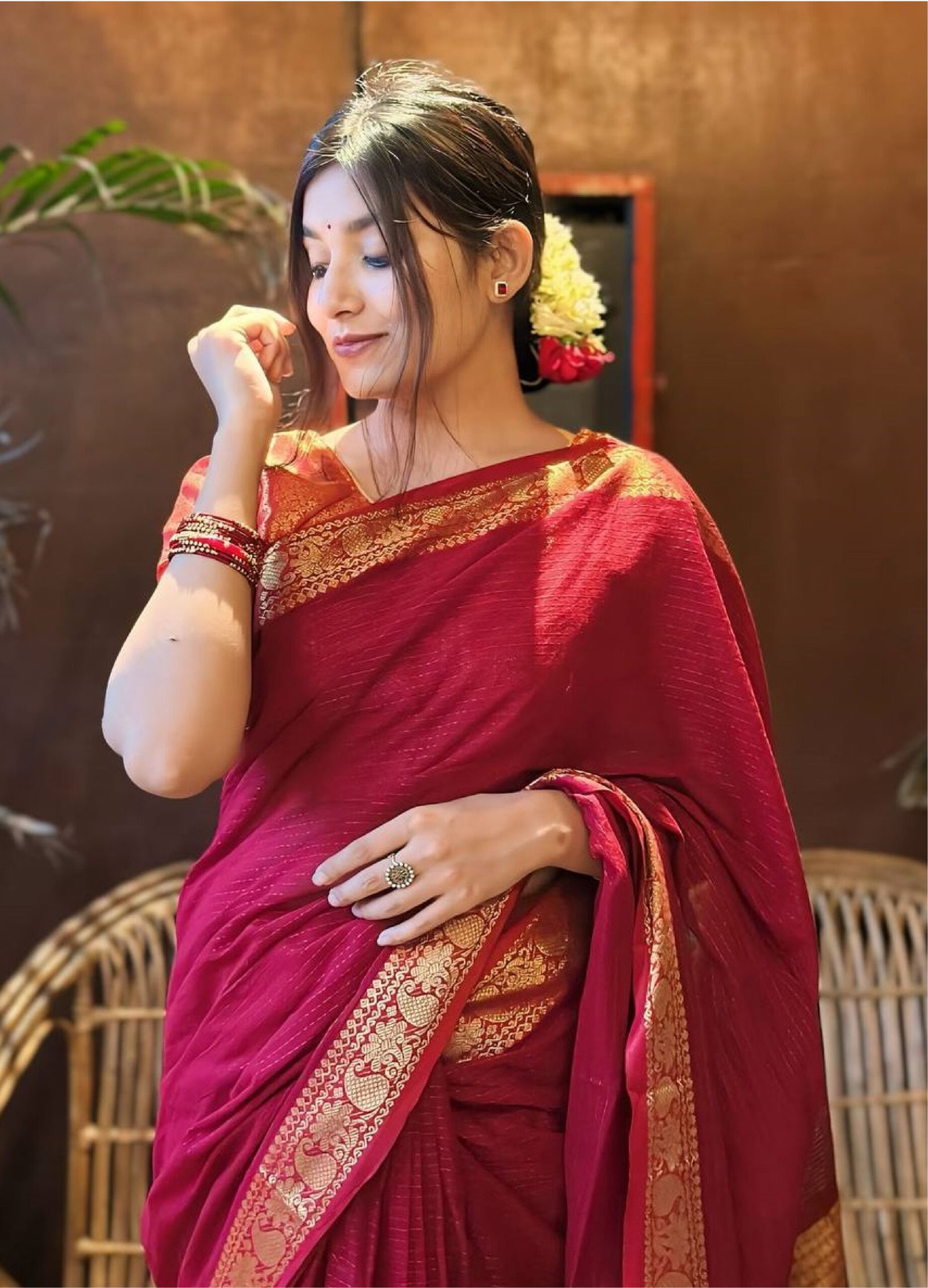 শাড়ির সাথে সেম ম্যাচিং ব্লাউজ পিস রয়েছে, যা আপনার স্টাইলকে সম্পূর্ণ করে।