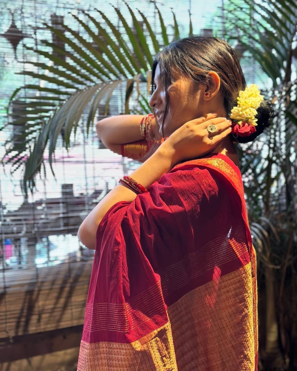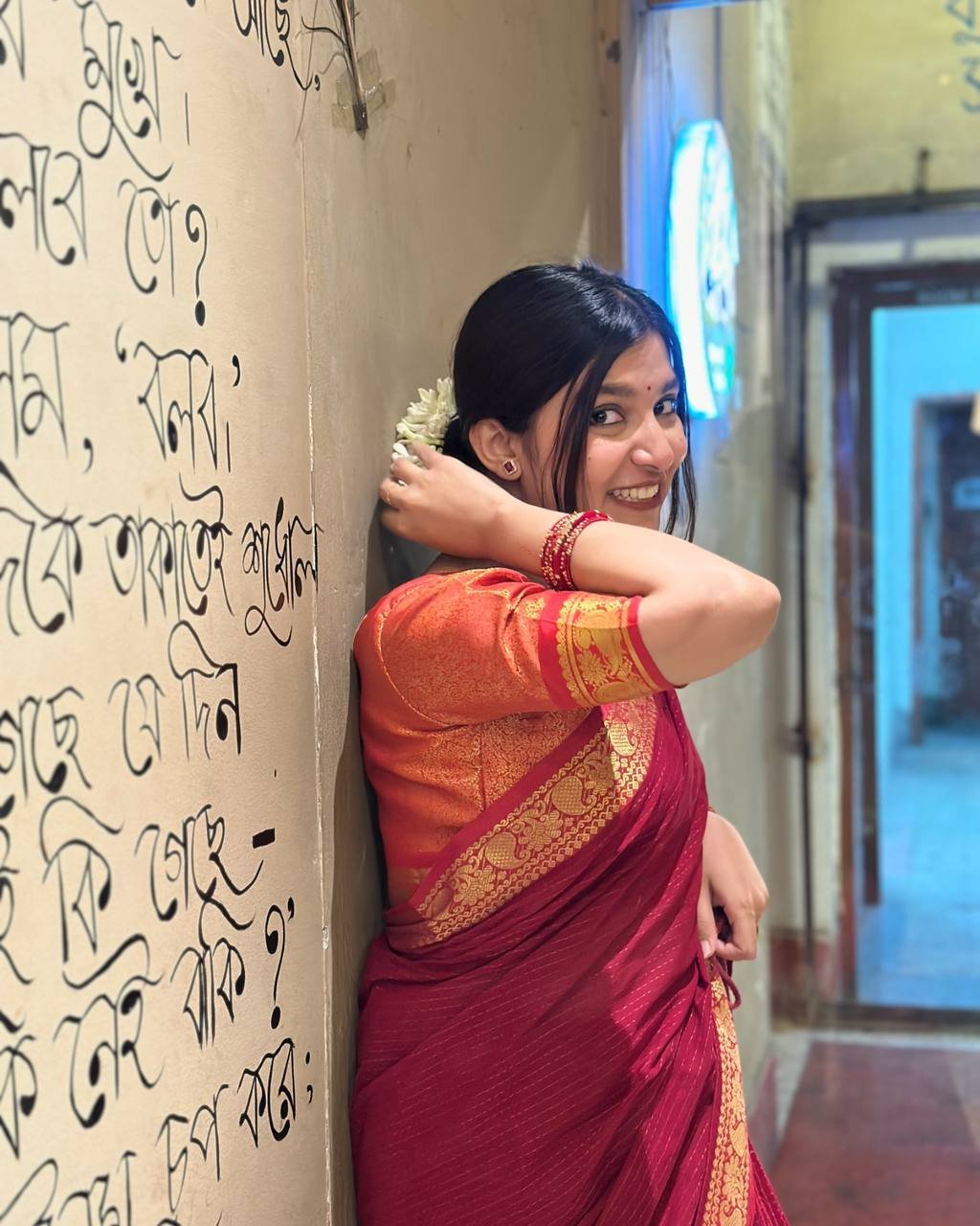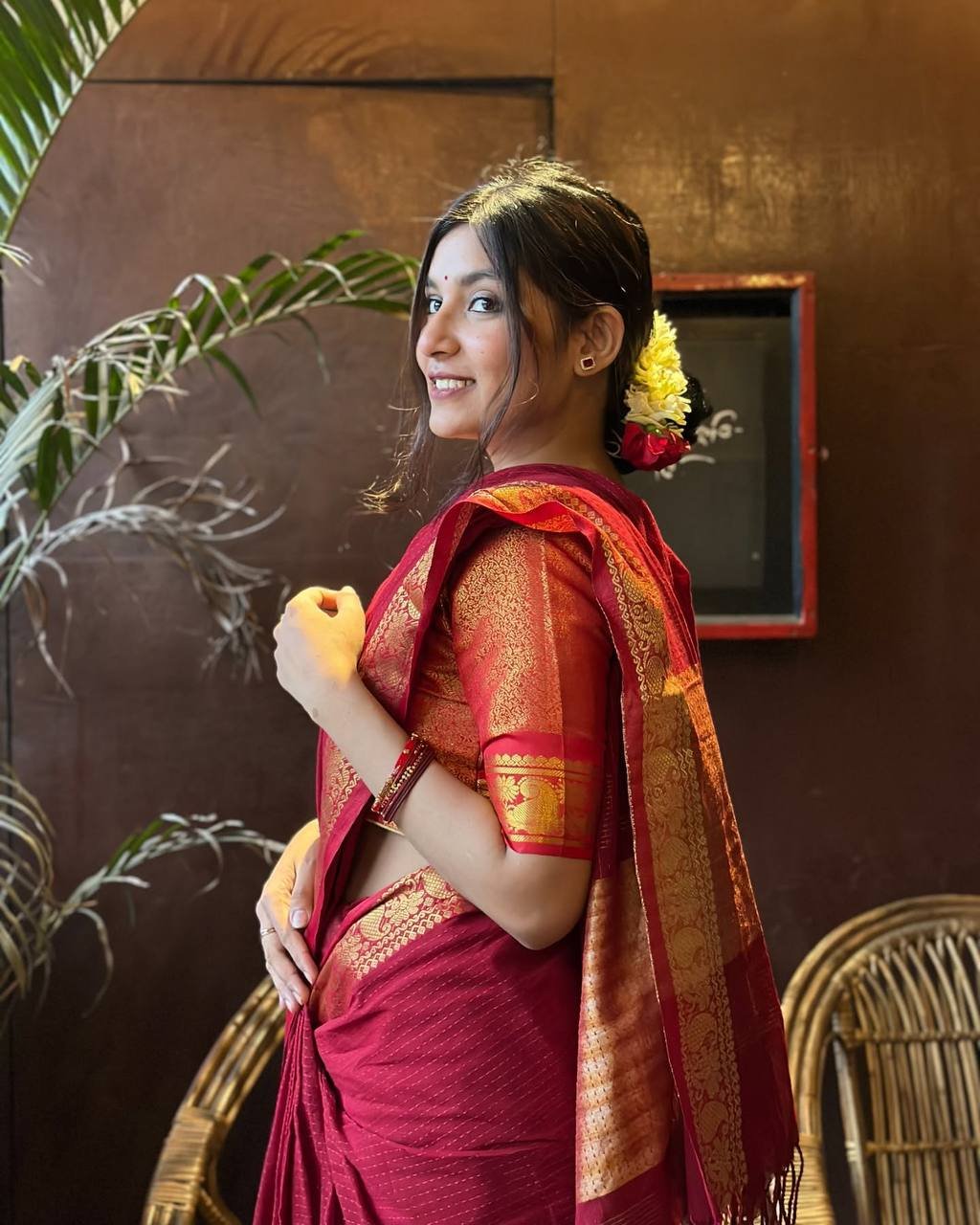 শাড়ির পুরো অংশে সূক্ষ্ম সুতার কাজ করা, যা আপনার লুকে আনবে অনন্যতা।